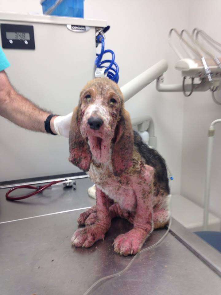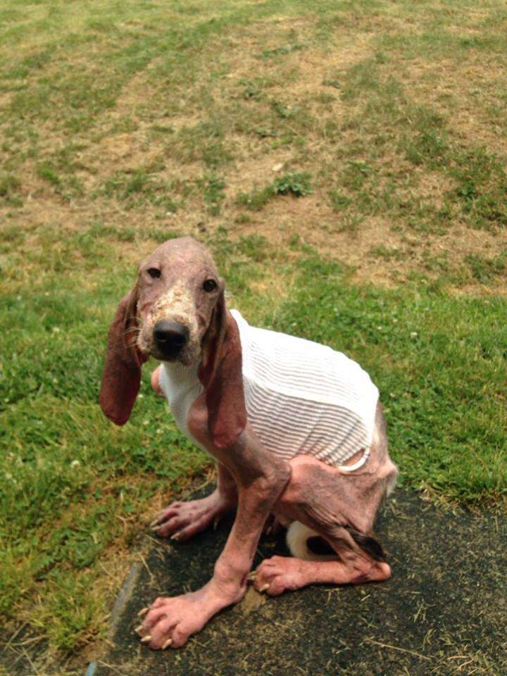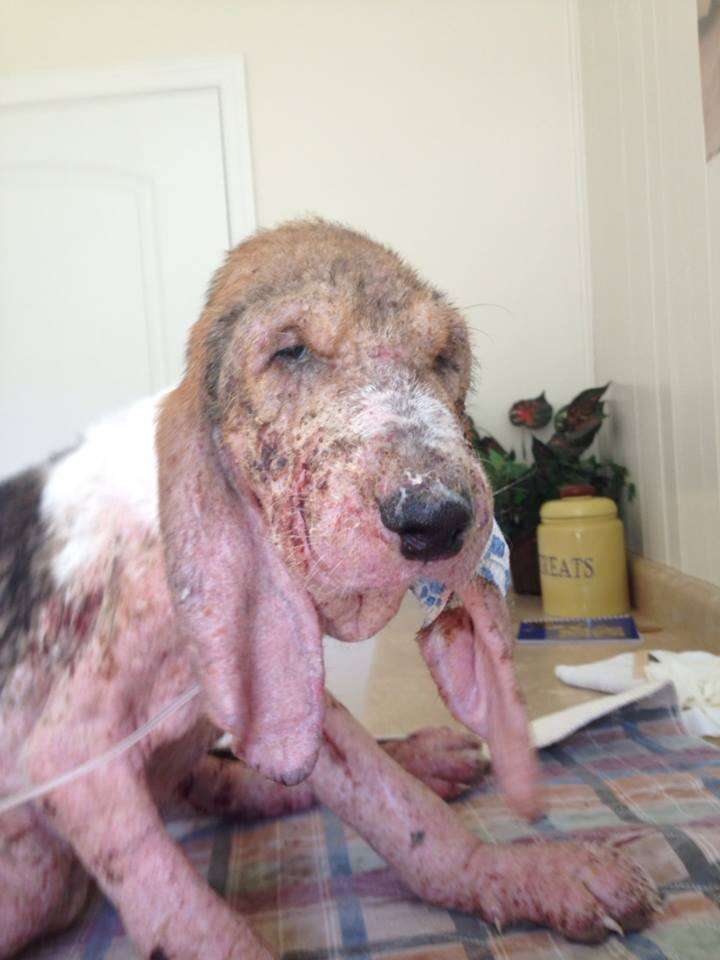 The mange had taken such a hold that his little body was about to give out. “He was just oozing with fluids,” Smith-Justus said, explaining that there was an 8-inch wet patch surrounding him wherever he sat. “He was just so swollen.”