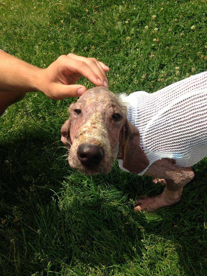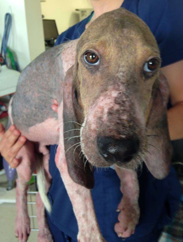 “At first he looked like he’d been scalded,” Smith-Justus said. At just 4 months old, the puppy was covered with a serious case of demodectic mange that he likely caught from his mother. “It was so severe,” she explained. “Just imagine like a second-degree burn.”