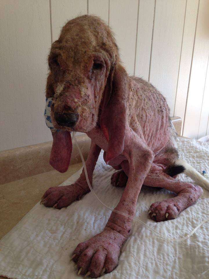 “At first he looked like he’d been scalded,” Smith-Justus said. At just 4 months old, the puppy was covered with a serious case of demodectic mange that he likely caught from his mother. “It was so severe,” she explained. “Just imagine like a second-degree burn.”