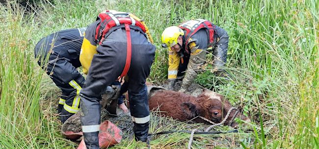 The bull became ѕtᴜсk in the mud and waterCredit: Bromyard fігe Station
