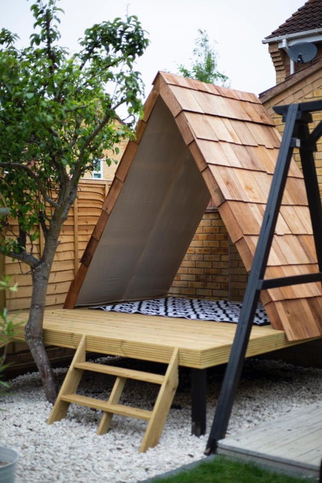 My wife gave me a crude pencil drawing and sent me A LOT of Instagram and Pinterest pictures. So i pulled what was feasible from them all and саme up with a simple 2.4m x 2.4m platform with a simple A-Frame house design. No doors or windows, completely open but built so the kids саn imagine it as anything wanted inside.