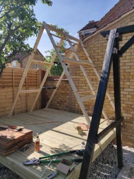 Once the main frame was built I then added smaller battens every 1ft down both sides of the frames to give me something to secure the shingles to.