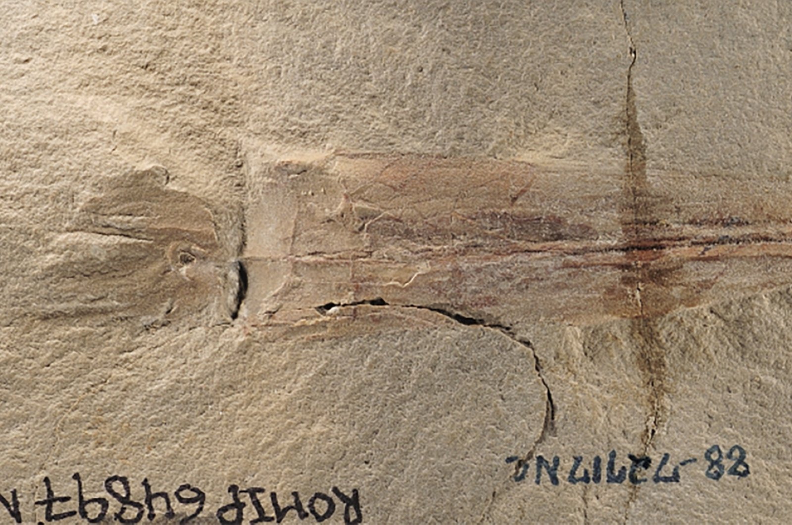 Two of Syllipsimopodi’s arms were about 1-1/2 inches long and the other eight half that length, a squid-like configuration.