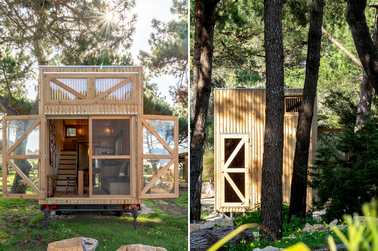 Portuguese carpentry and architecture studio Madeiguincho is known for its catalog of tiny homes, treehouses, interior furnishings, and sculpture work. The team’s latest off-grid tiny home is built atop four wheels that allow residents to take the house with them everywhere they go.
