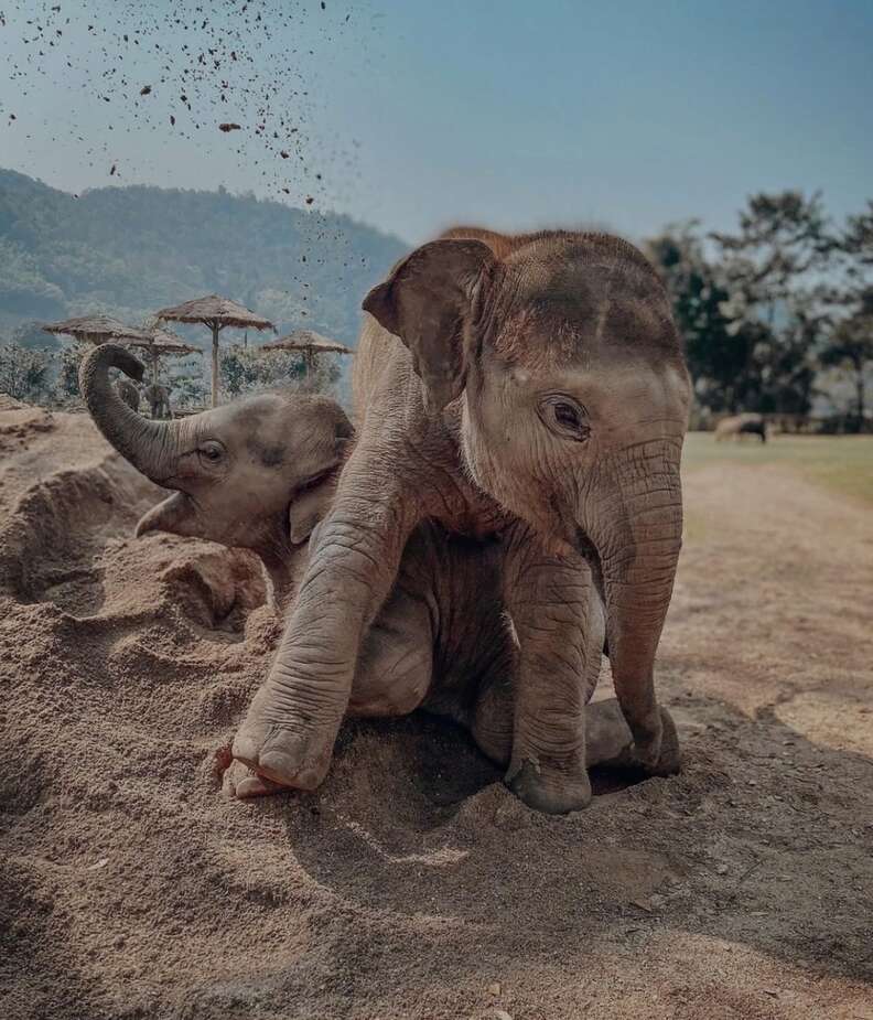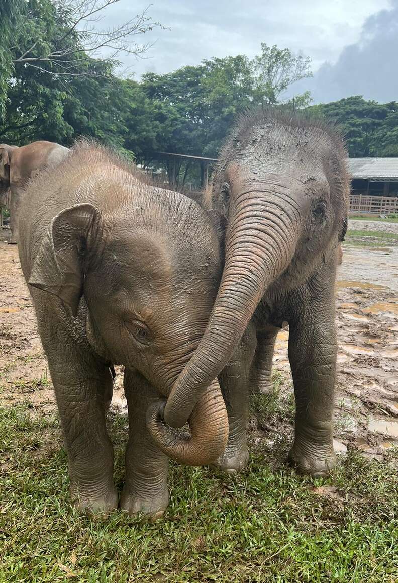 Chaba and Pyi Mai, both rescued from mistreatment at tourist attractions alongside their mothers, now enjoy the remainder of their lives in a nurturing herd, engaging in their favorite activities.