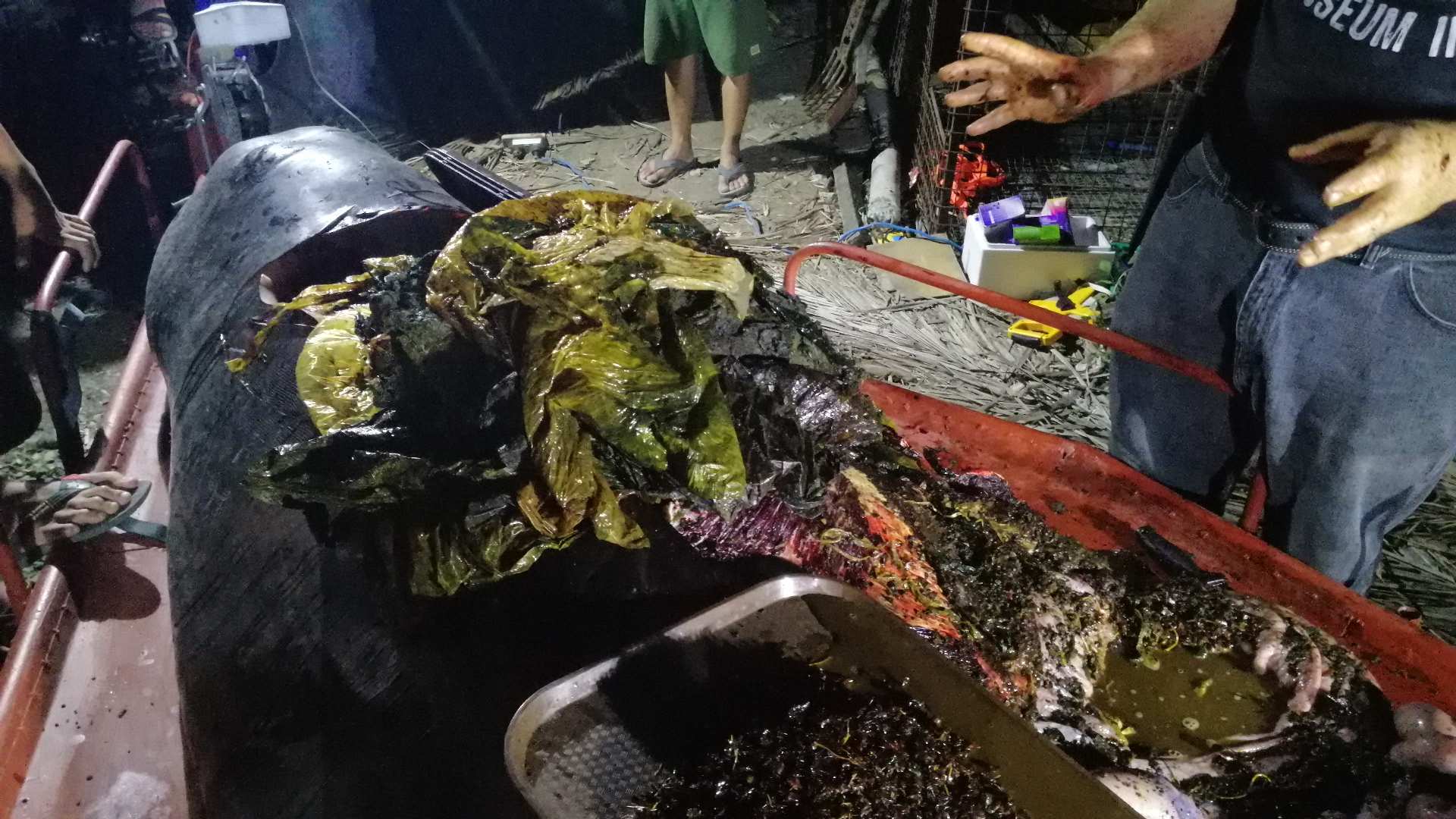 Inside the whale he found 16 rice sacks, four banana plantation bags and many grocery and general plastic bags.